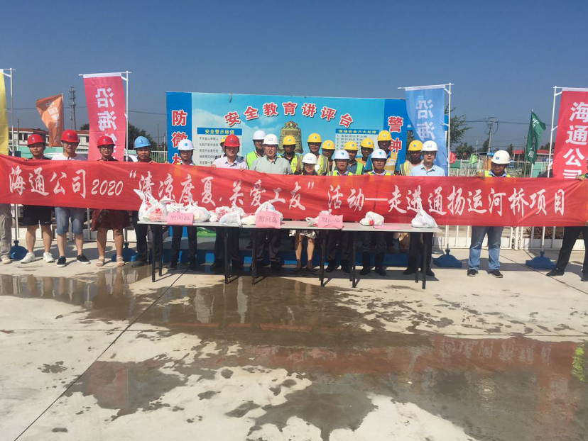 慰問過程中,海通公司副董事長孟曉楠強調(diào):希望施工單位務(wù)必要做好防暑降溫工作,科學管理,合理規(guī)劃工人在室外高溫作業(yè)時間,注意勞逸結(jié)合,注意防暑降溫,防止中暑引發(fā)安全事故。在保證安全施工、確保施工人員身體健康的前提下,繼續(xù)加強工程安全和質(zhì)量意識,保質(zhì)保量完成各階段目標。
