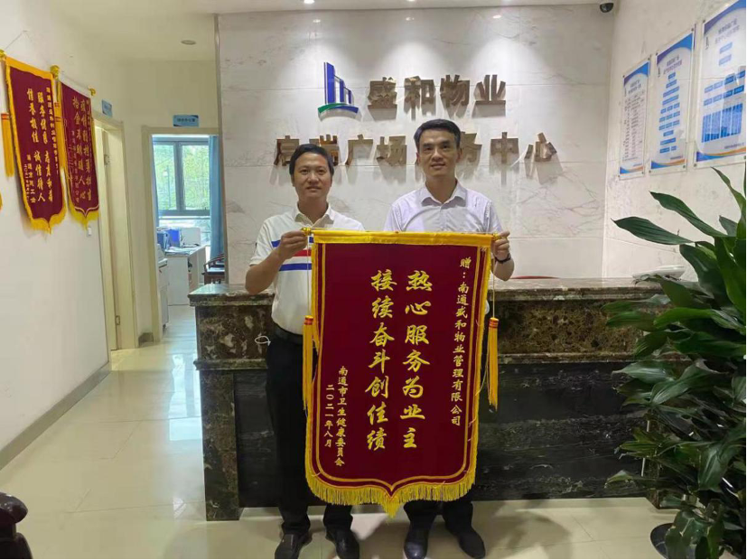 近日,南通市衛(wèi)生健康委員會(huì)將一面“熱心服務(wù)為業(yè)主、接續(xù)奮斗創(chuàng)佳績(jī)”的錦旗送到盛和物業(yè)啟瑞廣場(chǎng)服務(wù)中心,感謝物業(yè)公司在其開(kāi)展新冠肺炎疫情處置聯(lián)合實(shí)戰(zhàn)演練時(shí)期盡職盡責(zé)、熱情周到的服務(wù)。